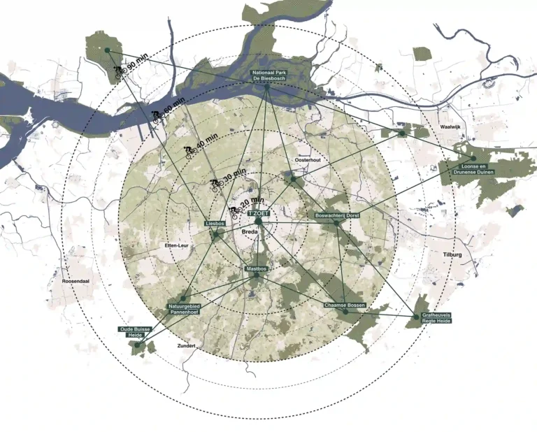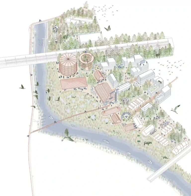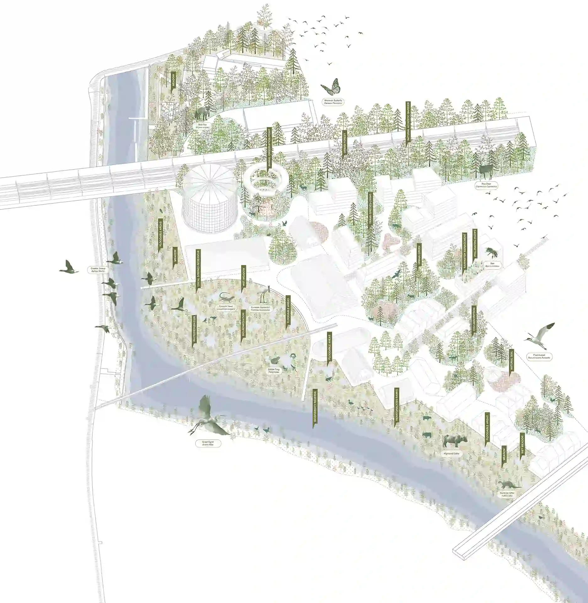 Esta estrategia sigue los principios de la «Ley de Restauración de la Naturaleza» de la UE de 2022, y se aleja del llamamiento arquitectónico a convertir esta zona en otro lugar donde se privilegie el statu quo que gira en torno a las meras necesidades humanas, ya que el contexto medioambiental no existe.
