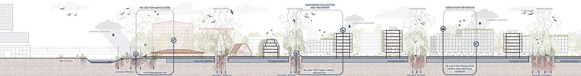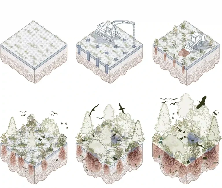 Este enfoque holístico puede contribuir a reequilibrar el metabolismo del lugar y del territorio próximo, restaurando los ciclos del agua, los suelos dañados, la biodiversidad, la fauna y la vida humana, preparando los «cimientos» de un nuevo paisaje urbano regenerativo que, gracias a su resiliencia, evolucionará de forma autónoma en los próximos años. A través del tiempo, es posible comprender el espacio